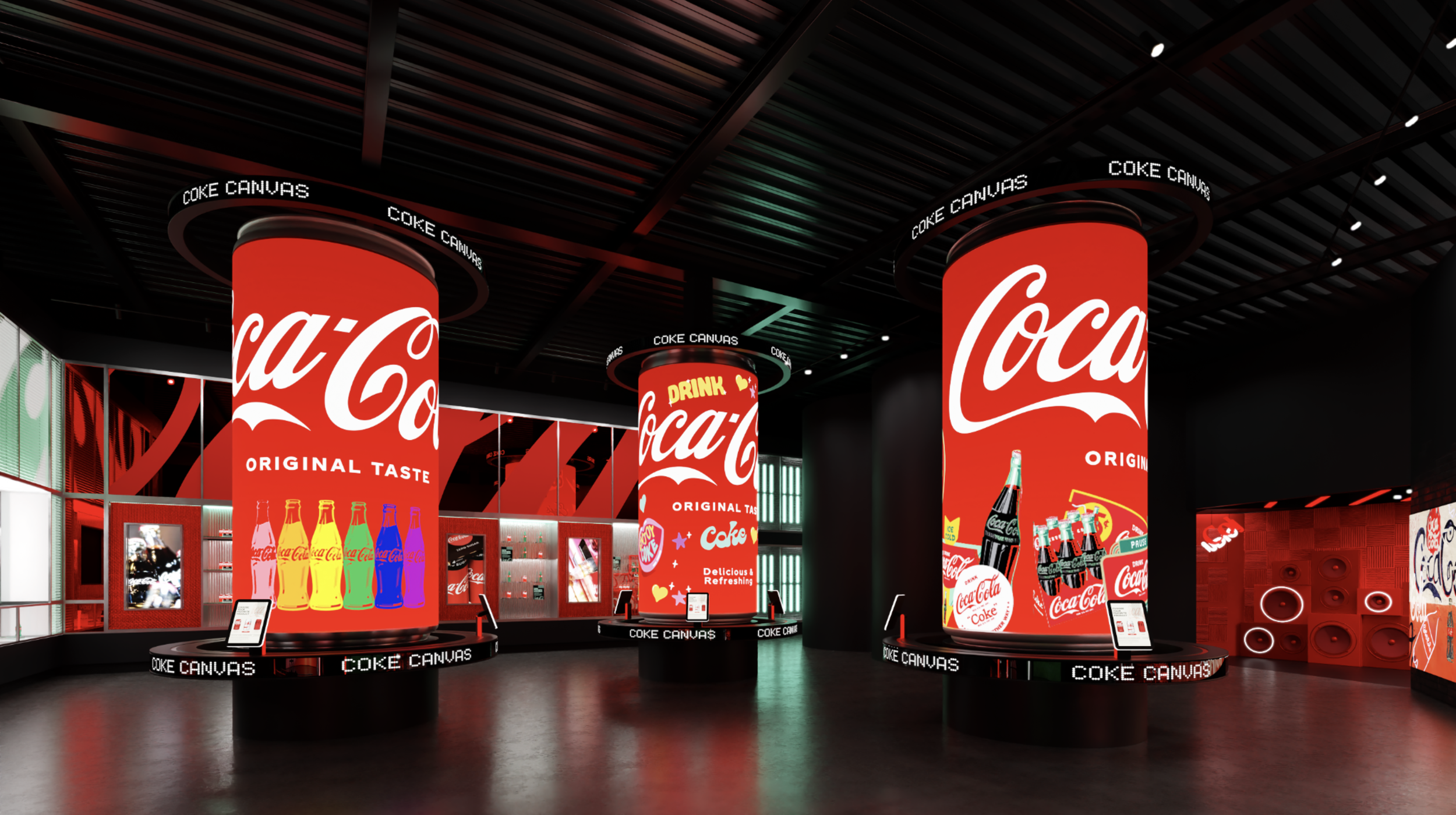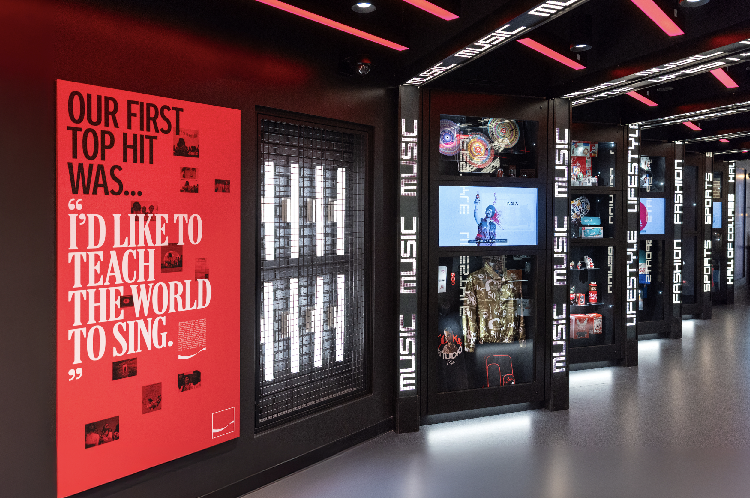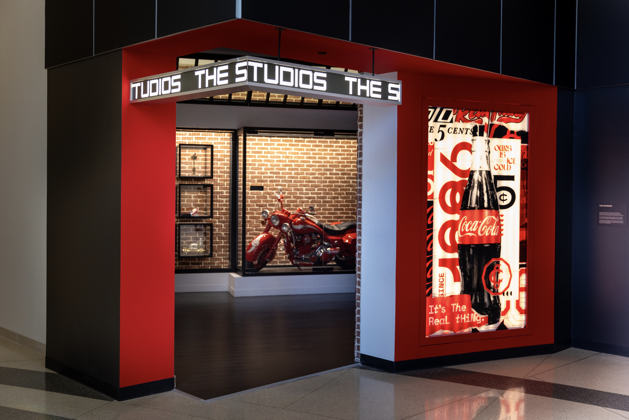 The Studios is an all-new, interactive exhibit at World of Coca‑Cola where guests explore Coca‑Cola’s iconic influence on art, music, fashion, sports, and entertainment. What began as a winning agency pitch evolved over eighteen months into a fully realized permanent installation, requiring ongoing rounds of ideation, design development, and environmental renderings. Every creative decision aligned with Coca-Cola’s cultural legacy while pushing the experience into new, immersive territory.